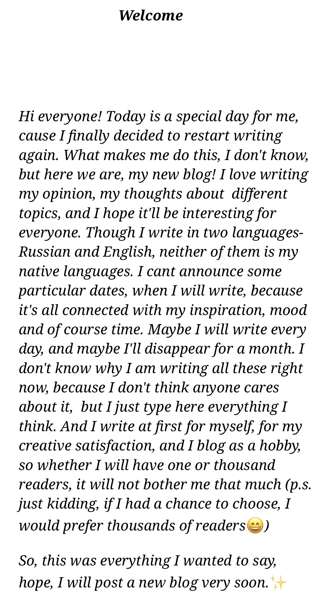 I remember this day very vividly. I was getting ready to go to a theater with my university group, and was quite excited but also anxious about it. I had never been good at social events even back then, so it was quite overwhelming for me. So, in order to distract myself for the past few hours before leaving the house, I decided to try this platform, opened an account and even wrote a short introductory post. And here we are now!