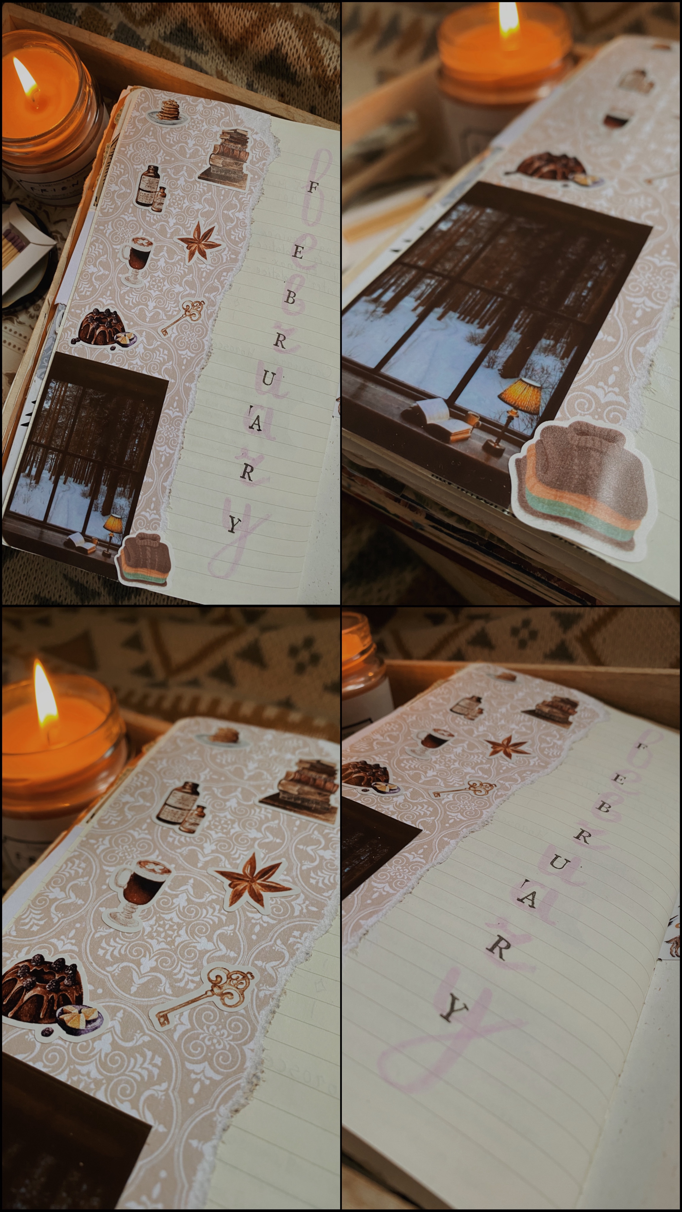 And of course, since winter is the best time for hygge atmosphere, I made sure to add some stickers in this style. I had some hot beverages, pastries, books that make the layout cozier. And some of the stickers and the paper I used still had some dusty pink tones, so it’s kind of a tribute to Valentine’s as well.